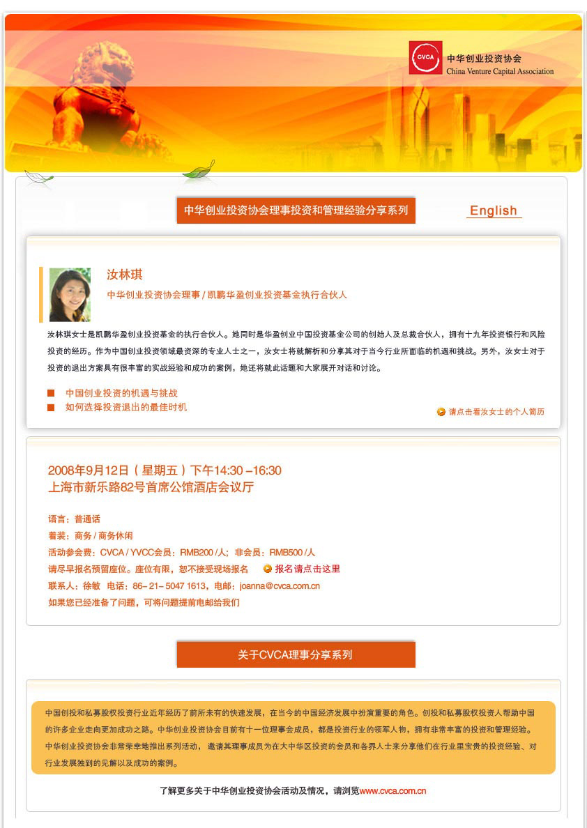 CVCA理事投资和管理经验分享系列 - 汝林琪 凯鹏华盈创业投资基金 执行合伙人